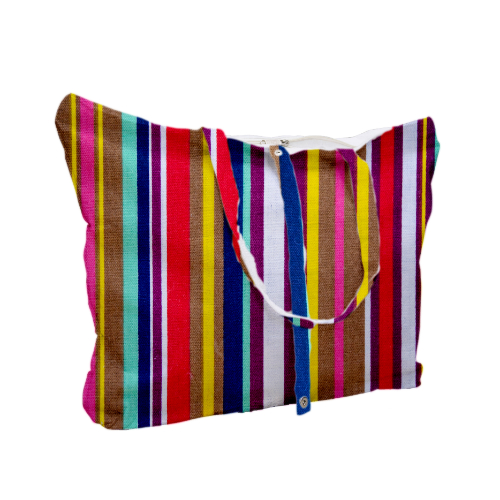 Indulge in simple elegance with this classic multi-hued striped bag and a vibrant outfit. You can never go wrong with the essentials, and this striped bag is a must-have! Secure your items without the fuss of losing them among your other things! The button closure offers an easy opening and also gives a trendy touch to the bag.