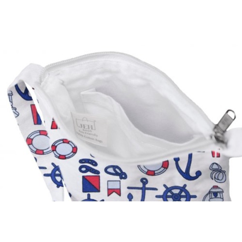 Ahoy! Pair this bag with a nautical-themed outfit (think blues and whites) for your next adventure. With bold impressions of the sea-faring bits and bobs, the bag reflects your wanderlust perfectly. With a more spacious compartment accompanied by a small inner pocket and a long handle, this bag is ideal for carrying all your essential items.